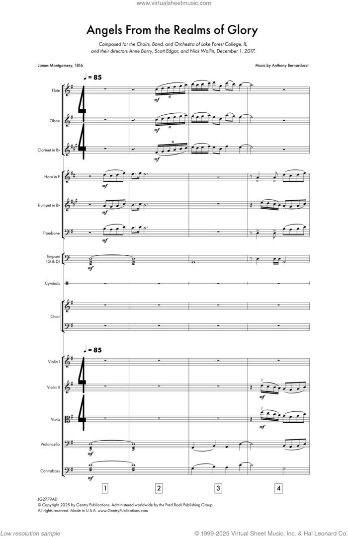 Anthony Bernarducci: Angels From The Realms Of Glory (COMPLETE) for orchestra/band, intermediate sheet music. Includes an High-Quality PDF file to download instantly. Licensed to Virtual Sheet Music® by Hal Leonard® publishing company.