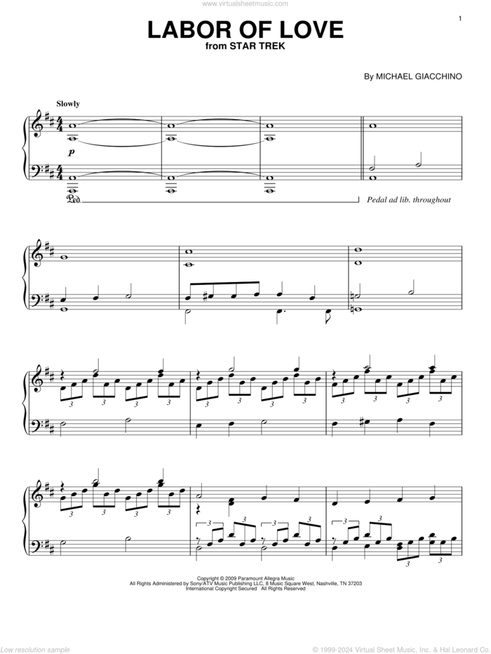 This new feature (still experimental) allows you to ask questions related to this music title to our AI music assistant (powered by OpenAI ChatGPT), trained to answer as an expert on this music title.You may ask questions like "When was this song written?" or "How would you suggest approaching this song?" You can also ask questions about the author or anything else you may think of. Just enter your queries inside the field on the top of the displayed music and click the "Ask" button on the left to start chatting. Remember that the assistant cannot perform catalog searches. It is focused only on this music title. It could also give you wrong or imperfect answers. In that case, click the "regenerate" button on the side of the answer to replace it with a new one. And, of course, you can provide feedback for each answer so we can improve the system. ![]() Michael Giacchino: Labor Of Love for piano solo, intermediate piano sheet music. High-Quality and Interactive, transposable in any key, play along. Includes an High-Quality PDF file to download instantly. Licensed to Virtual Sheet Music® by Hal Leonard® publishing company. NOTE: The sample above is just the first page preview of this item. Buy this item to display, print, and play the complete music. Basic Score Info