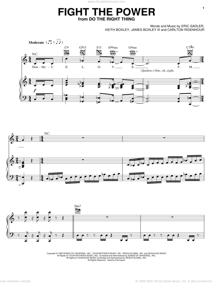 This new feature (still experimental) allows you to ask questions related to this music title to our AI music assistant (powered by OpenAI ChatGPT), trained to answer as an expert on this music title.You may ask questions like "When was this song written?" or "How would you suggest approaching this song?" You can also ask questions about the author or anything else you may think of. Just enter your queries inside the field on the top of the displayed music and click the "Ask" button on the left to start chatting. Remember that the assistant cannot perform catalog searches. It is focused only on this music title. It could also give you wrong or imperfect answers. In that case, click the "regenerate" button on the side of the answer to replace it with a new one. And, of course, you can provide feedback for each answer so we can improve the system. ![]() Public Enemy: Fight The Power for voice, piano or guitar, intermediate sheet music. High-Quality and Interactive, transposable in any key, play along. Includes an High-Quality PDF file to download instantly. Licensed to Virtual Sheet Music® by Hal Leonard® publishing company. NOTE: The sample above is just the first page preview of this item. Buy this item to display, print, and play the complete music. Basic Score Info