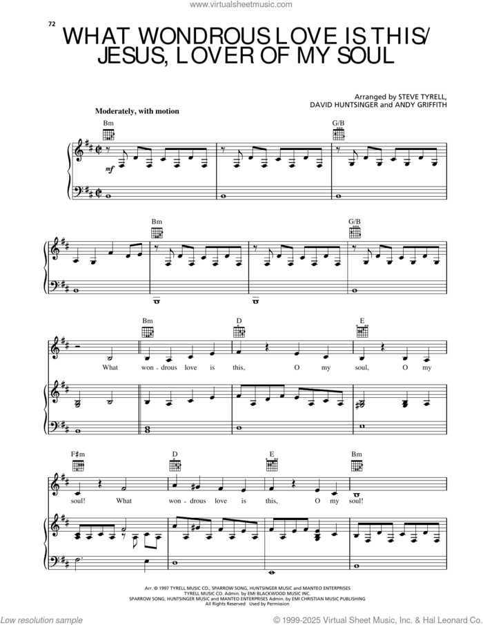 This new feature (still experimental) allows you to ask questions related to this music title to our AI music assistant (powered by OpenAI ChatGPT), trained to answer as an expert on this music title.You may ask questions like "When was this song written?" or "How would you suggest approaching this song?" You can also ask questions about the author or anything else you may think of. Just enter your queries inside the field on the top of the displayed music and click the "Ask" button on the left to start chatting. Remember that the assistant cannot perform catalog searches. It is focused only on this music title. It could also give you wrong or imperfect answers. In that case, click the "regenerate" button on the side of the answer to replace it with a new one. And, of course, you can provide feedback for each answer so we can improve the system. ![]() Andy Griffith: What Wondrous Love Is This/Jesus, Lover Of My Soul for voice, piano or guitar, intermediate sheet music. Includes an High-Quality PDF file to download instantly. Licensed to Virtual Sheet Music® by Hal Leonard® publishing company. NOTE: The image above is just a preview of the first page of this item. Buy this item to display, print, and enjoy the complete music. Basic Score Info