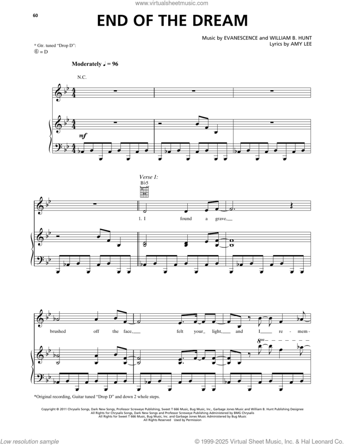This new feature (still experimental) allows you to ask questions related to this music title to our AI music assistant (powered by OpenAI ChatGPT), trained to answer as an expert on this music title.You may ask questions like "When was this song written?" or "How would you suggest approaching this song?" You can also ask questions about the author or anything else you may think of. Just enter your queries inside the field on the top of the displayed music and click the "Ask" button on the left to start chatting. Remember that the assistant cannot perform catalog searches. It is focused only on this music title. It could also give you wrong or imperfect answers. In that case, click the "regenerate" button on the side of the answer to replace it with a new one. And, of course, you can provide feedback for each answer so we can improve the system. ![]() Evanescence: End Of The Dream for voice, piano or guitar, intermediate sheet music. Includes an High-Quality PDF file to download instantly. Licensed to Virtual Sheet Music® by Hal Leonard® publishing company. NOTE: The image above is just a preview of the first page of this item. Buy this item to display, print, and enjoy the complete music. Basic Score Info