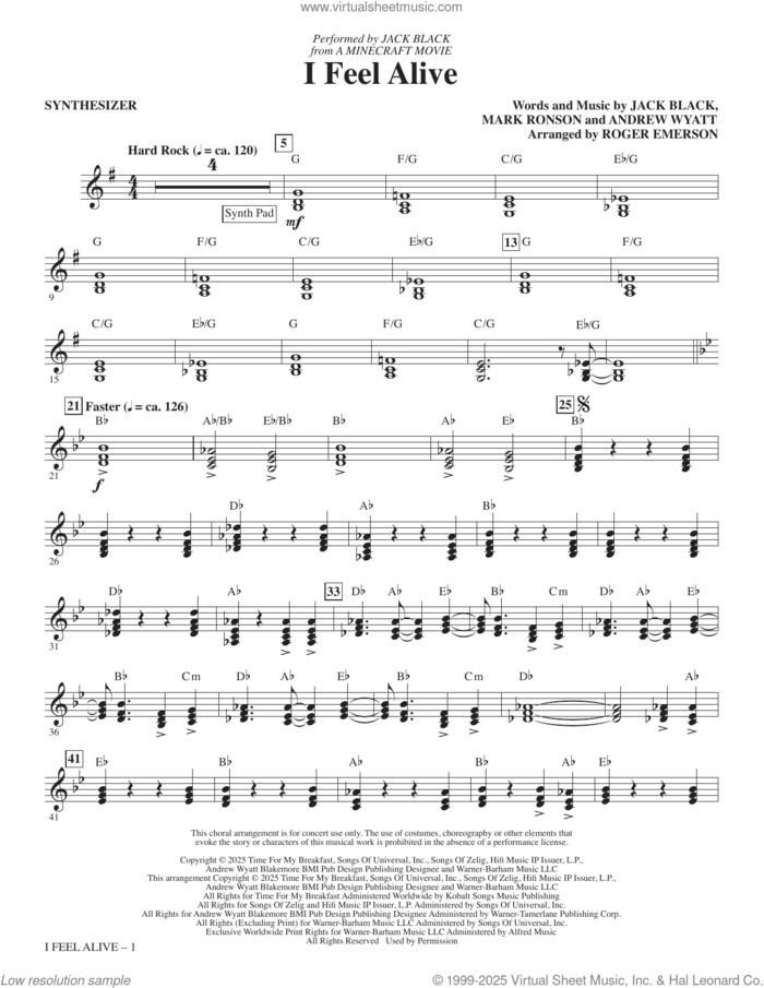 This new feature (still experimental) allows you to ask questions related to this music title to our AI music assistant (powered by OpenAI ChatGPT), trained to answer as an expert on this music title.You may ask questions like "When was this song written?" or "How would you suggest approaching this song?" You can also ask questions about the author or anything else you may think of. Just enter your queries inside the field on the top of the displayed music and click the "Ask" button on the left to start chatting. Remember that the assistant cannot perform catalog searches. It is focused only on this music title. It could also give you wrong or imperfect answers. In that case, click the "regenerate" button on the side of the answer to replace it with a new one. And, of course, you can provide feedback for each answer so we can improve the system. ![]() Roger Emerson: I Feel Alive (from A Minecraft Movie) (arr. Roger Emerson) (complete set of parts) for orchestra/band (Rhythm), intermediate sheet music. Includes an High-Quality PDF file to download instantly. Licensed to Virtual Sheet Music® by Hal Leonard® publishing company. NOTE: The image above is just a preview of the first page of this item. Buy this item to display, print, and enjoy the complete music. Basic Score Info