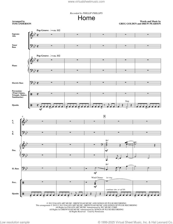 This new feature (still experimental) allows you to ask questions related to this music title to our AI music assistant (powered by OpenAI ChatGPT), trained to answer as an expert on this music title.You may ask questions like "When was this song written?" or "How would you suggest approaching this song?" You can also ask questions about the author or anything else you may think of. Just enter your queries inside the field on the top of the displayed music and click the "Ask" button on the left to start chatting. Remember that the assistant cannot perform catalog searches. It is focused only on this music title. It could also give you wrong or imperfect answers. In that case, click the "regenerate" button on the side of the answer to replace it with a new one. And, of course, you can provide feedback for each answer so we can improve the system. ![]() Phillip Phillips: Home (arr. Tom Anderson) (COMPLETE) for orchestra/band (Instrumental Accompaniment), intermediate sheet music. Includes an High-Quality PDF file to download instantly. Licensed to Virtual Sheet Music® by Hal Leonard® publishing company. NOTE: The image above is just a preview of the first page of this item. Buy this item to display, print, and enjoy the complete music. Basic Score Info