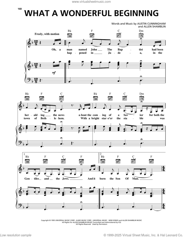 This new feature (still experimental) allows you to ask questions related to this music title to our AI music assistant (powered by OpenAI ChatGPT), trained to answer as an expert on this music title.You may ask questions like "When was this song written?" or "How would you suggest approaching this song?" You can also ask questions about the author or anything else you may think of. Just enter your queries inside the field on the top of the displayed music and click the "Ask" button on the left to start chatting. Remember that the assistant cannot perform catalog searches. It is focused only on this music title. It could also give you wrong or imperfect answers. In that case, click the "regenerate" button on the side of the answer to replace it with a new one. And, of course, you can provide feedback for each answer so we can improve the system. ![]() Kathy Mattea: What A Wonderful Beginning for voice, piano or guitar, intermediate sheet music. Includes an High-Quality PDF file to download instantly. Licensed to Virtual Sheet Music® by Hal Leonard® publishing company. NOTE: The image above is just a preview of the first page of this item. Buy this item to display, print, and enjoy the complete music. Basic Score Info