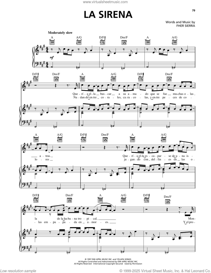 Maná: La Sirena for voice, piano or guitar, intermediate sheet music. Includes an High-Quality PDF file to download instantly. Licensed to Virtual Sheet Music® by Hal Leonard® publishing company.