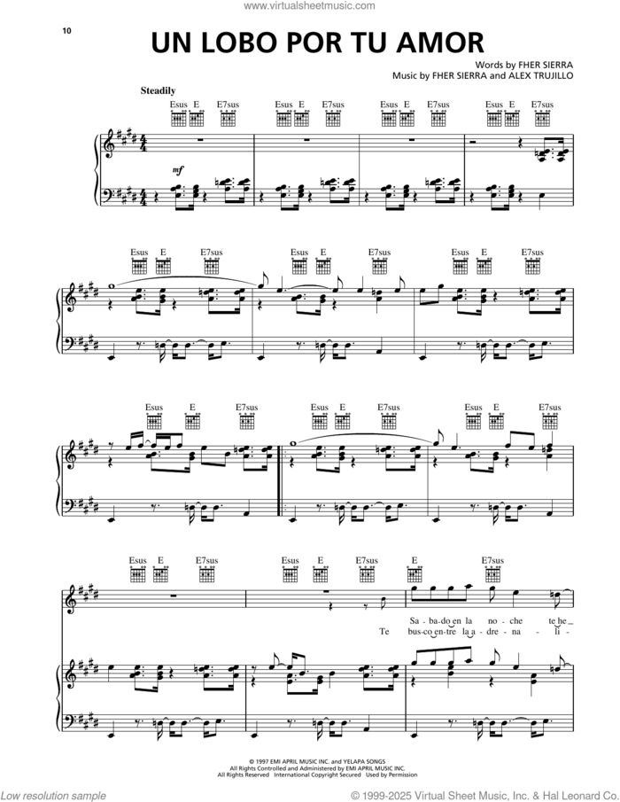 This new feature (still experimental) allows you to ask questions related to this music title to our AI music assistant (powered by OpenAI ChatGPT), trained to answer as an expert on this music title.You may ask questions like "When was this song written?" or "How would you suggest approaching this song?" You can also ask questions about the author or anything else you may think of. Just enter your queries inside the field on the top of the displayed music and click the "Ask" button on the left to start chatting. Remember that the assistant cannot perform catalog searches. It is focused only on this music title. It could also give you wrong or imperfect answers. In that case, click the "regenerate" button on the side of the answer to replace it with a new one. And, of course, you can provide feedback for each answer so we can improve the system. ![]() Maná: Un Lobo Por Tu Amor for voice, piano or guitar, intermediate sheet music. Includes an High-Quality PDF file to download instantly. Licensed to Virtual Sheet Music® by Hal Leonard® publishing company. NOTE: The image above is just a preview of the first page of this item. Buy this item to display, print, and enjoy the complete music. Basic Score Info