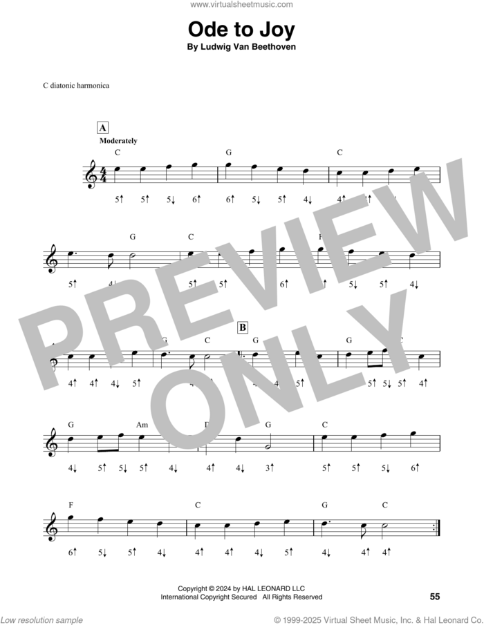 This new feature (still experimental) allows you to ask questions related to this music title to our AI music assistant (powered by OpenAI ChatGPT), trained to answer as an expert on this music title.You may ask questions like "When was this piece written?" or "How would you suggest approaching this piece?" You can also ask questions about the author or anything else you may think of. Just enter your queries inside the field on the top of the displayed music and click the "Ask" button on the left to start chatting. Remember that the assistant cannot perform catalog searches. It is focused only on this music title. It could also give you wrong or imperfect answers. In that case, click the "regenerate" button on the side of the answer to replace it with a new one. And, of course, you can provide feedback for each answer so we can improve the system. ![]() Ludwig Van Beethoven: Ode To Joy for harmonica solo, intermediate harmonica sheet music. Includes an High-Quality PDF file to download instantly. Licensed to Virtual Sheet Music® by Hal Leonard® publishing company. NOTE: The image above is just a preview of the first page of this item. Buy this item to display, print, and enjoy the complete music. Basic Score Info