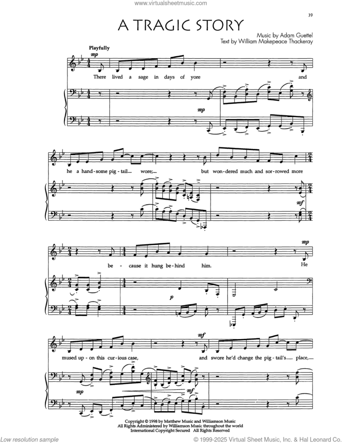 This new feature (still experimental) allows you to ask questions related to this music title to our AI music assistant (powered by OpenAI ChatGPT), trained to answer as an expert on this music title.You may ask questions like "When was this song written?" or "How would you suggest approaching this song?" You can also ask questions about the author or anything else you may think of. Just enter your queries inside the field on the top of the displayed music and click the "Ask" button on the left to start chatting. Remember that the assistant cannot perform catalog searches. It is focused only on this music title. It could also give you wrong or imperfect answers. In that case, click the "regenerate" button on the side of the answer to replace it with a new one. And, of course, you can provide feedback for each answer so we can improve the system. ![]() Audra McDonald: A Tragic Story for voice and piano, intermediate voice sheet music. Includes an High-Quality PDF file to download instantly. Licensed to Virtual Sheet Music® by Hal Leonard® publishing company. NOTE: The image above is just a preview of the first page of this item. Buy this item to display, print, and enjoy the complete music. Basic Score Info