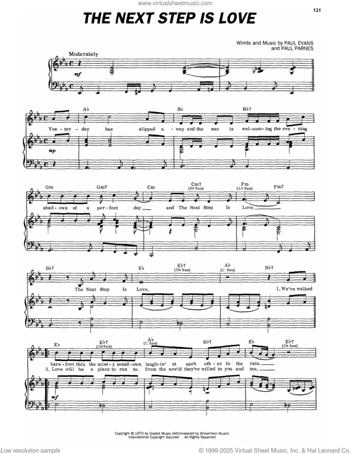This new feature (still experimental) allows you to ask questions related to this music title to our AI music assistant (powered by OpenAI ChatGPT), trained to answer as an expert on this music title.You may ask questions like "When was this song written?" or "How would you suggest approaching this song?" You can also ask questions about the author or anything else you may think of. Just enter your queries inside the field on the top of the displayed music and click the "Ask" button on the left to start chatting. Remember that the assistant cannot perform catalog searches. It is focused only on this music title. It could also give you wrong or imperfect answers. In that case, click the "regenerate" button on the side of the answer to replace it with a new one. And, of course, you can provide feedback for each answer so we can improve the system. ![]() Elvis Presley: The Next Step Is Love for voice, piano or guitar, intermediate sheet music. Includes an High-Quality PDF file to download instantly. Licensed to Virtual Sheet Music® by Hal Leonard® publishing company. NOTE: The image above is just a preview of the first page of this item. Buy this item to display, print, and enjoy the complete music. Basic Score Info