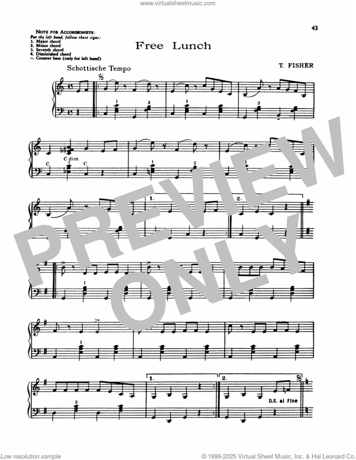 Free Lunch sheet music for piano solo by Lawrence Welk and T. Fisher, intermediate skill level