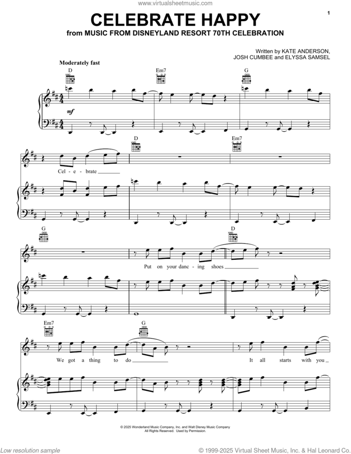 This new feature (still experimental) allows you to ask questions related to this music title to our AI music assistant (powered by OpenAI ChatGPT), trained to answer as an expert on this music title.You may ask questions like "When was this song written?" or "How would you suggest approaching this song?" You can also ask questions about the author or anything else you may think of. Just enter your queries inside the field on the top of the displayed music and click the "Ask" button on the left to start chatting. Remember that the assistant cannot perform catalog searches. It is focused only on this music title. It could also give you wrong or imperfect answers. In that case, click the "regenerate" button on the side of the answer to replace it with a new one. And, of course, you can provide feedback for each answer so we can improve the system. ![]() Jonas Brothers: Celebrate Happy for voice, piano or guitar, intermediate sheet music. High-Quality and Interactive, transposable in any key, play along. Includes an High-Quality PDF file to download instantly. Licensed to Virtual Sheet Music® by Hal Leonard® publishing company. NOTE: The sample above is just the first page preview of this item. Buy this item to display, print, and play the complete music. Basic Score Info