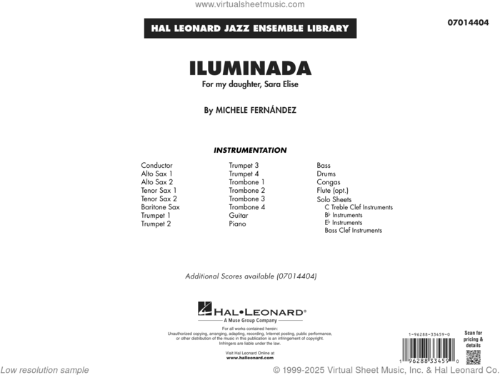 This new feature (still experimental) allows you to ask questions related to this music title to our AI music assistant (powered by OpenAI ChatGPT), trained to answer as an expert on this music title.You may ask questions like "When was this song written?" or "How would you suggest approaching this song?" You can also ask questions about the author or anything else you may think of. Just enter your queries inside the field on the top of the displayed music and click the "Ask" button on the left to start chatting. Remember that the assistant cannot perform catalog searches. It is focused only on this music title. It could also give you wrong or imperfect answers. In that case, click the "regenerate" button on the side of the answer to replace it with a new one. And, of course, you can provide feedback for each answer so we can improve the system. ![]() Michele Fernández: Iluminada (COMPLETE) for jazz band, intermediate sheet music. Includes an High-Quality PDF file to download instantly. Licensed to Virtual Sheet Music® by Hal Leonard® publishing company. NOTE: The image above is just a preview of the first page of this item. Buy this item to display, print, and enjoy the complete music. Basic Score Info