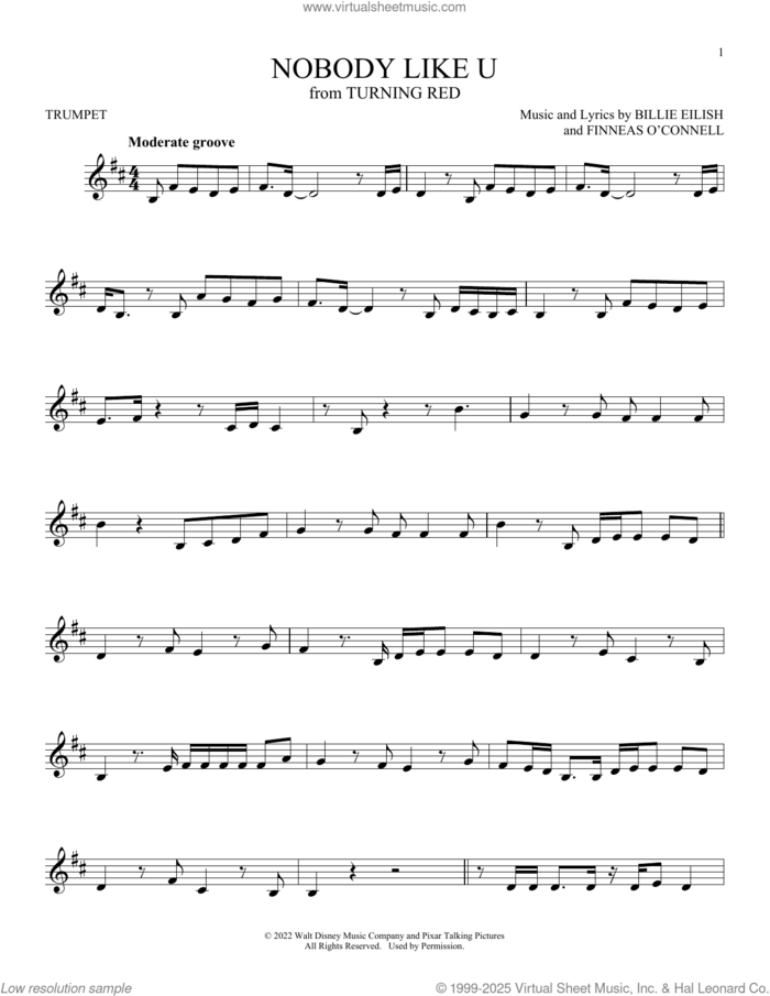 Nobody Like U (from Turning Red) sheet music for trumpet