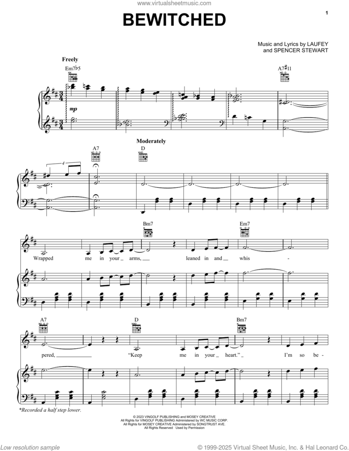 This new feature (still experimental) allows you to ask questions related to this music title to our AI music assistant (powered by OpenAI ChatGPT), trained to answer as an expert on this music title.You may ask questions like "When was this song written?" or "How would you suggest approaching this song?" You can also ask questions about the author or anything else you may think of. Just enter your queries inside the field on the top of the displayed music and click the "Ask" button on the left to start chatting. Remember that the assistant cannot perform catalog searches. It is focused only on this music title. It could also give you wrong or imperfect answers. In that case, click the "regenerate" button on the side of the answer to replace it with a new one. And, of course, you can provide feedback for each answer so we can improve the system. ![]() Laufey: Bewitched for voice, piano or guitar, intermediate sheet music. High-Quality and Interactive, transposable in any key, play along. Includes an High-Quality PDF file to download instantly. Licensed to Virtual Sheet Music® by Hal Leonard® publishing company. NOTE: The sample above is just the first page preview of this item. Buy this item to display, print, and play the complete music. Basic Score Info