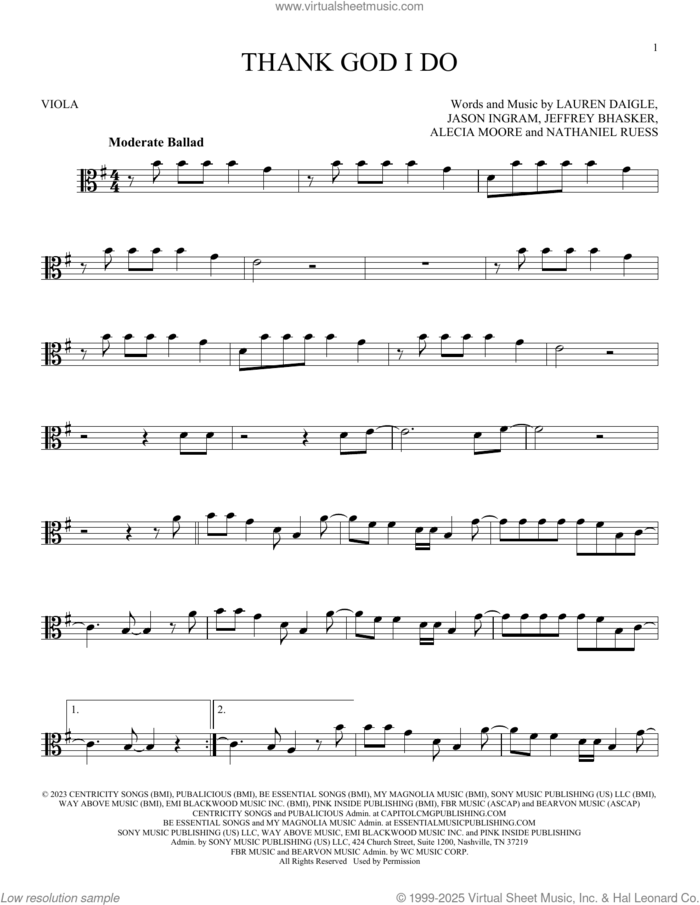 This new feature (still experimental) allows you to ask questions related to this music title to our AI music assistant (powered by OpenAI ChatGPT), trained to answer as an expert on this music title.You may ask questions like "When was this song written?" or "How would you suggest approaching this song?" You can also ask questions about the author or anything else you may think of. Just enter your queries inside the field on the top of the displayed music and click the "Ask" button on the left to start chatting. Remember that the assistant cannot perform catalog searches. It is focused only on this music title. It could also give you wrong or imperfect answers. In that case, click the "regenerate" button on the side of the answer to replace it with a new one. And, of course, you can provide feedback for each answer so we can improve the system. ![]() Lauren Daigle: Thank God I Do for viola solo, intermediate viola sheet music. High-Quality and Interactive, transposable in any key, play along. Includes an High-Quality PDF file to download instantly. Licensed to Virtual Sheet Music® by Hal Leonard® publishing company. NOTE: The sample above is just the first page preview of this item. Buy this item to display, print, and play the complete music. Basic Score Info