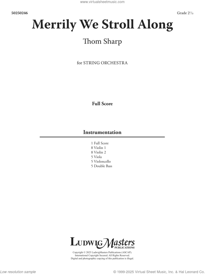 This new feature (still experimental) allows you to ask questions related to this music title to our AI music assistant (powered by OpenAI ChatGPT), trained to answer as an expert on this music title.You may ask questions like "When was this song written?" or "How would you suggest approaching this song?" You can also ask questions about the author or anything else you may think of. Just enter your queries inside the field on the top of the displayed music and click the "Ask" button on the left to start chatting. Remember that the assistant cannot perform catalog searches. It is focused only on this music title. It could also give you wrong or imperfect answers. In that case, click the "regenerate" button on the side of the answer to replace it with a new one. And, of course, you can provide feedback for each answer so we can improve the system. ![]() Thom Sharp: Merrily We Stroll Along (COMPLETE) for orchestra, intermediate sheet music. Includes an High-Quality PDF file to download instantly. Licensed to Virtual Sheet Music® by Hal Leonard® publishing company. NOTE: The image above is just a preview of the first page of this item. Buy this item to display, print, and enjoy the complete music.