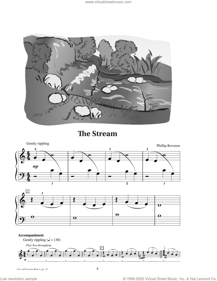 This new feature (still experimental) allows you to ask questions related to this music title to our AI music assistant (powered by OpenAI ChatGPT), trained to answer as an expert on this music title.You may ask questions like "When was this song written?" or "How would you suggest approaching this song?" You can also ask questions about the author or anything else you may think of. Just enter your queries inside the field on the top of the displayed music and click the "Ask" button on the left to start chatting. Remember that the assistant cannot perform catalog searches. It is focused only on this music title. It could also give you wrong or imperfect answers. In that case, click the "regenerate" button on the side of the answer to replace it with a new one. And, of course, you can provide feedback for each answer so we can improve the system. ![]() Phillip Keveren: The Stream for piano solo (elementary), beginner piano (elementary) sheet music. Includes an High-Quality PDF file to download instantly. Licensed to Virtual Sheet Music® by Hal Leonard® publishing company. NOTE: The image above is just a preview of the first page of this item. Buy this item to display, print, and enjoy the complete music. Basic Score Info