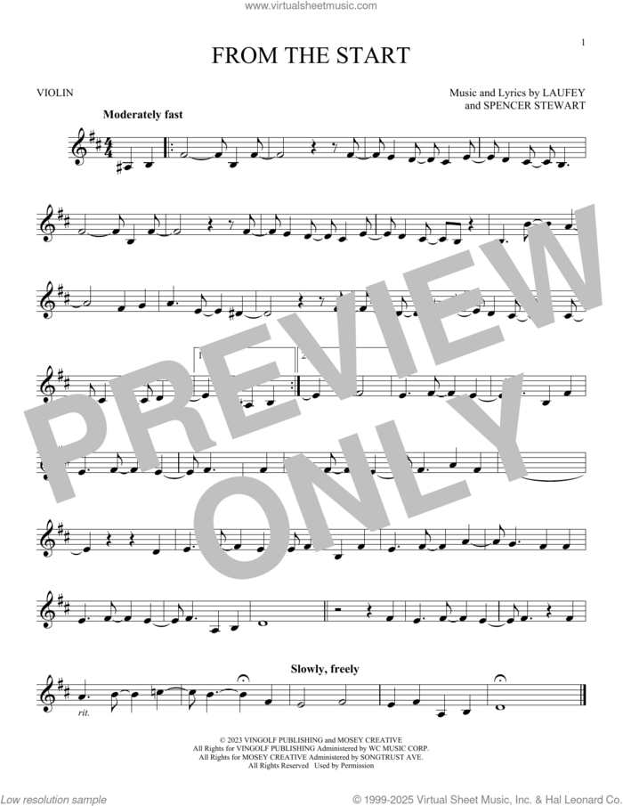 This new feature (still experimental) allows you to ask questions related to this music title to our AI music assistant (powered by OpenAI ChatGPT), trained to answer as an expert on this music title.You may ask questions like "When was this song written?" or "How would you suggest approaching this song?" You can also ask questions about the author or anything else you may think of. Just enter your queries inside the field on the top of the displayed music and click the "Ask" button on the left to start chatting. Remember that the assistant cannot perform catalog searches. It is focused only on this music title. It could also give you wrong or imperfect answers. In that case, click the "regenerate" button on the side of the answer to replace it with a new one. And, of course, you can provide feedback for each answer so we can improve the system. ![]() Laufey: From The Start for violin solo, intermediate violin sheet music. High-Quality and Interactive, transposable in any key, play along. Includes an High-Quality PDF file to download instantly. Licensed to Virtual Sheet Music® by Hal Leonard® publishing company. NOTE: The sample above is just the first page preview of this item. Buy this item to display, print, and play the complete music. Basic Score Info