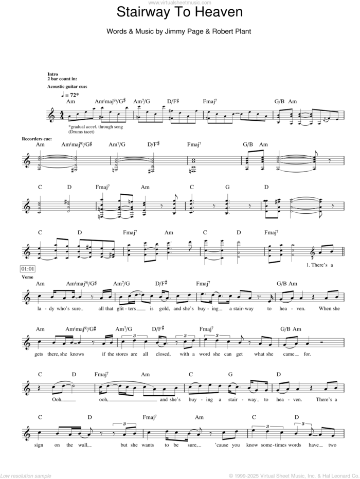 This new feature (still experimental) allows you to ask questions related to this music title to our AI music assistant (powered by OpenAI ChatGPT), trained to answer as an expert on this music title.You may ask questions like "When was this song written?" or "How would you suggest approaching this song?" You can also ask questions about the author or anything else you may think of. Just enter your queries inside the field on the top of the displayed music and click the "Ask" button on the left to start chatting. Remember that the assistant cannot perform catalog searches. It is focused only on this music title. It could also give you wrong or imperfect answers. In that case, click the "regenerate" button on the side of the answer to replace it with a new one. And, of course, you can provide feedback for each answer so we can improve the system. ![]() Led Zeppelin: Stairway To Heaven for voice and other instruments (fake book), intermediate voice sheet music. Includes an High-Quality PDF file to download instantly. Licensed to Virtual Sheet Music® by Hal Leonard® publishing company. NOTE: The image above is just a preview of the first page of this item. Buy this item to display, print, and enjoy the complete music. Basic Score Info