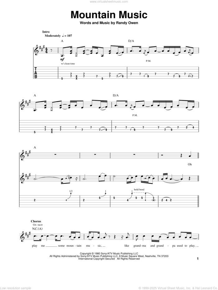 This new feature (still experimental) allows you to ask questions related to this music title to our AI music assistant (powered by OpenAI ChatGPT), trained to answer as an expert on this music title.You may ask questions like "When was this song written?" or "How would you suggest approaching this song?" You can also ask questions about the author or anything else you may think of. Just enter your queries inside the field on the top of the displayed music and click the "Ask" button on the left to start chatting. Remember that the assistant cannot perform catalog searches. It is focused only on this music title. It could also give you wrong or imperfect answers. In that case, click the "regenerate" button on the side of the answer to replace it with a new one. And, of course, you can provide feedback for each answer so we can improve the system. ![]() Alabama: Mountain Music for guitar (tablature, play-along), intermediate sheet music. Includes an High-Quality PDF file to download instantly. Licensed to Virtual Sheet Music® by Hal Leonard® publishing company. NOTE: The image above is just a preview of the first page of this item. Buy this item to display, print, and enjoy the complete music. Basic Score Info