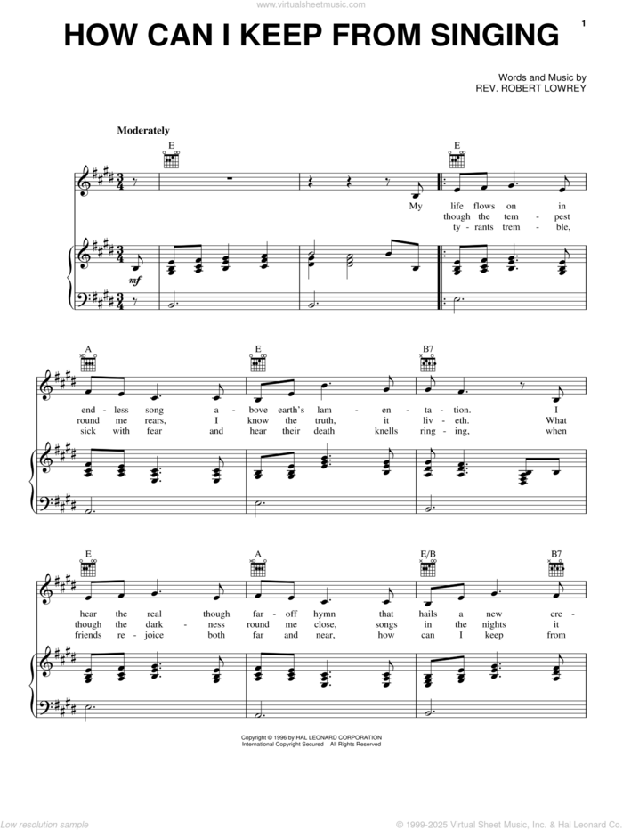This new feature (still experimental) allows you to ask questions related to this music title to our AI music assistant (powered by OpenAI ChatGPT), trained to answer as an expert on this music title.You may ask questions like "When was this song written?" or "How would you suggest approaching this song?" You can also ask questions about the author or anything else you may think of. Just enter your queries inside the field on the top of the displayed music and click the "Ask" button on the left to start chatting. Remember that the assistant cannot perform catalog searches. It is focused only on this music title. It could also give you wrong or imperfect answers. In that case, click the "regenerate" button on the side of the answer to replace it with a new one. And, of course, you can provide feedback for each answer so we can improve the system. ![]() How Can I Keep From Singing for voice, piano or guitar, intermediate sheet music. High-Quality and Interactive, transposable in any key, play along. Includes an High-Quality PDF file to download instantly. Licensed to Virtual Sheet Music® by Hal Leonard® publishing company. NOTE: The sample above is just the first page preview of this item. Buy this item to display, print, and play the complete music. Basic Score Info