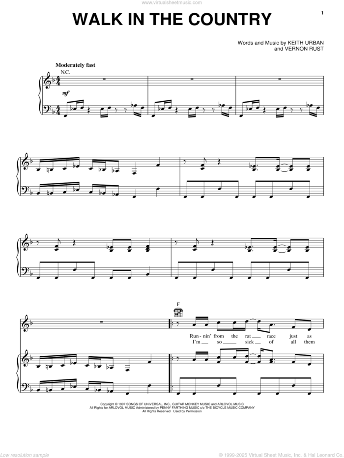 This new feature (still experimental) allows you to ask questions related to this music title to our AI music assistant (powered by OpenAI ChatGPT), trained to answer as an expert on this music title.You may ask questions like "When was this song written?" or "How would you suggest approaching this song?" You can also ask questions about the author or anything else you may think of. Just enter your queries inside the field on the top of the displayed music and click the "Ask" button on the left to start chatting. Remember that the assistant cannot perform catalog searches. It is focused only on this music title. It could also give you wrong or imperfect answers. In that case, click the "regenerate" button on the side of the answer to replace it with a new one. And, of course, you can provide feedback for each answer so we can improve the system. ![]() Scotty McCreery: Walk In The Country for voice, piano or guitar, intermediate sheet music. High-Quality and Interactive, transposable in any key, play along. Includes an High-Quality PDF file to download instantly. Licensed to Virtual Sheet Music® by Hal Leonard® publishing company. NOTE: The sample above is just the first page preview of this item. Buy this item to display, print, and play the complete music. Basic Score Info