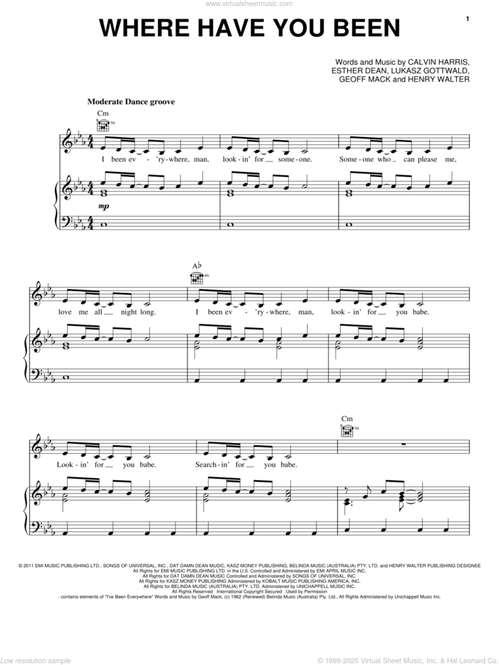 This new feature (still experimental) allows you to ask questions related to this music title to our AI music assistant (powered by OpenAI ChatGPT), trained to answer as an expert on this music title.You may ask questions like "When was this song written?" or "How would you suggest approaching this song?" You can also ask questions about the author or anything else you may think of. Just enter your queries inside the field on the top of the displayed music and click the "Ask" button on the left to start chatting. Remember that the assistant cannot perform catalog searches. It is focused only on this music title. It could also give you wrong or imperfect answers. In that case, click the "regenerate" button on the side of the answer to replace it with a new one. And, of course, you can provide feedback for each answer so we can improve the system. ![]() Rihanna: Where Have You Been for voice, piano or guitar, intermediate sheet music. High-Quality and Interactive, transposable in any key, play along. Includes an High-Quality PDF file to download instantly. Licensed to Virtual Sheet Music® by Hal Leonard® publishing company. NOTE: The sample above is just the first page preview of this item. Buy this item to display, print, and play the complete music. Basic Score Info