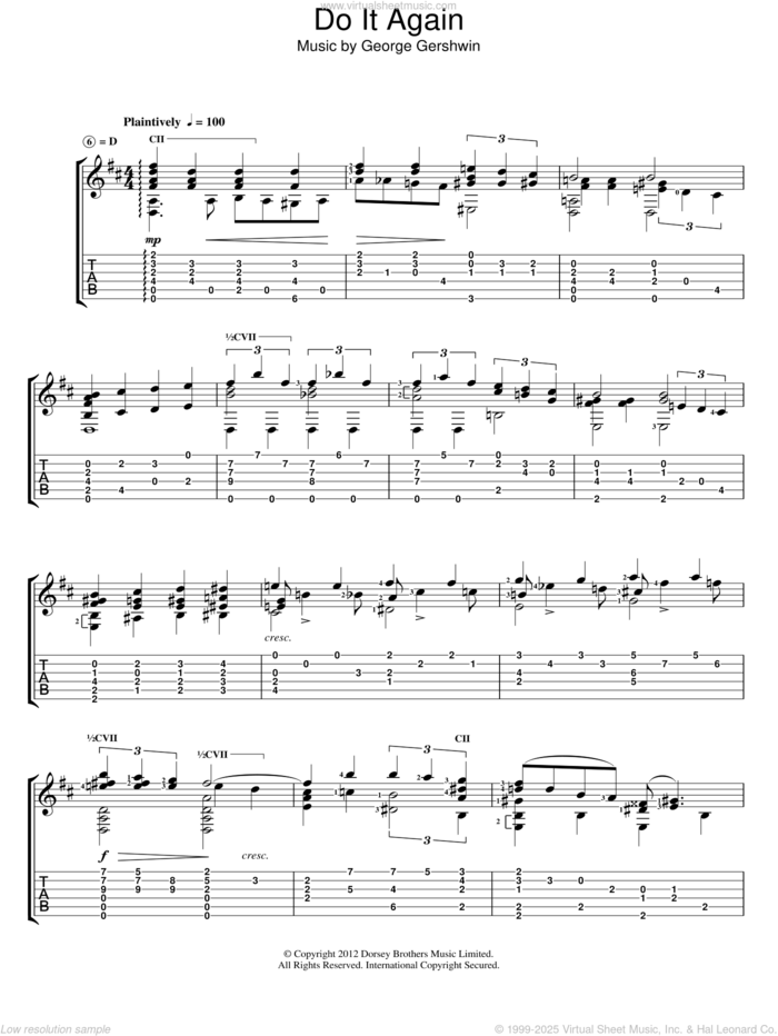 This new feature (still experimental) allows you to ask questions related to this music title to our AI music assistant (powered by OpenAI ChatGPT), trained to answer as an expert on this music title.You may ask questions like "When was this song written?" or "How would you suggest approaching this song?" You can also ask questions about the author or anything else you may think of. Just enter your queries inside the field on the top of the displayed music and click the "Ask" button on the left to start chatting. Remember that the assistant cannot perform catalog searches. It is focused only on this music title. It could also give you wrong or imperfect answers. In that case, click the "regenerate" button on the side of the answer to replace it with a new one. And, of course, you can provide feedback for each answer so we can improve the system. ![]() Jerry Willard: Do It Again for guitar solo (chords), easy guitar (chords) sheet music. Includes an High-Quality PDF file to download instantly. Licensed to Virtual Sheet Music® by Hal Leonard® publishing company. NOTE: The image above is just a preview of the first page of this item. Buy this item to display, print, and enjoy the complete music. Basic Score Info