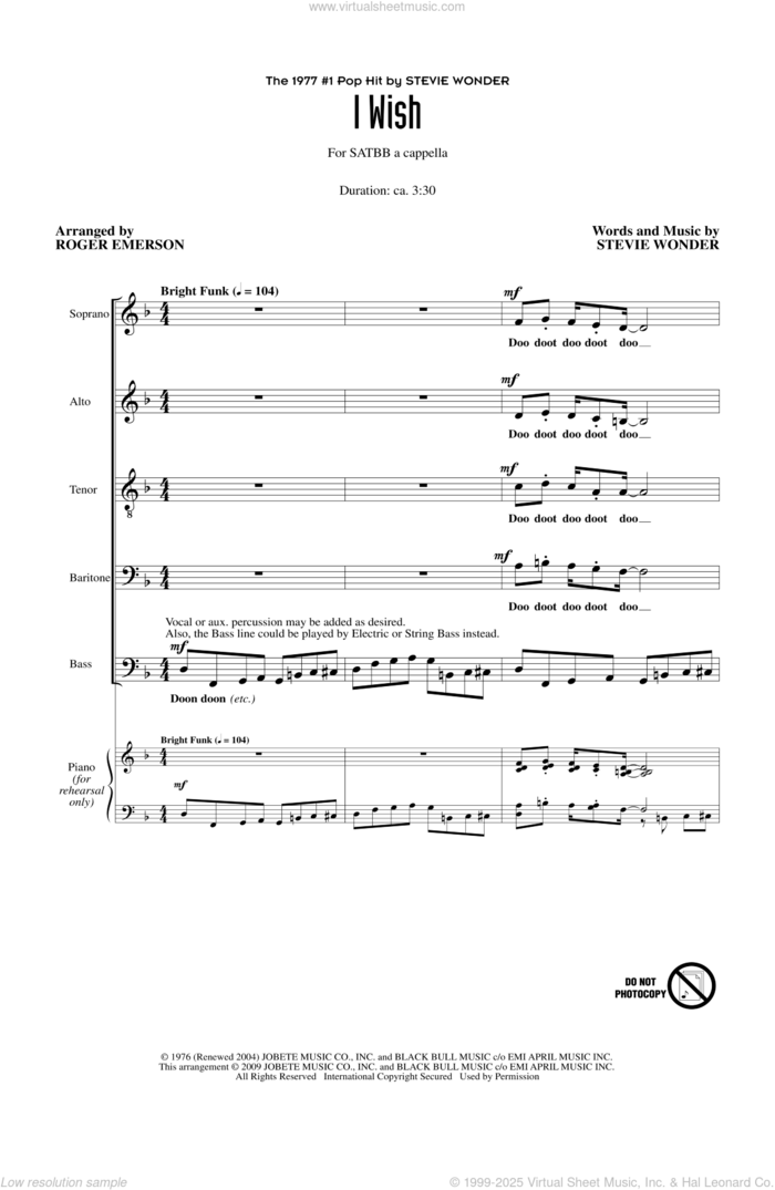 This new feature (still experimental) allows you to ask questions related to this music title to our AI music assistant (powered by OpenAI ChatGPT), trained to answer as an expert on this music title.You may ask questions like "When was this song written?" or "How would you suggest approaching this song?" You can also ask questions about the author or anything else you may think of. Just enter your queries inside the field on the top of the displayed music and click the "Ask" button on the left to start chatting. Remember that the assistant cannot perform catalog searches. It is focused only on this music title. It could also give you wrong or imperfect answers. In that case, click the "regenerate" button on the side of the answer to replace it with a new one. And, of course, you can provide feedback for each answer so we can improve the system. ![]() Roger Emerson: I Wish for choir (SATB: soprano, alto, tenor, bass), intermediate sheet music. Includes an High-Quality PDF file to download instantly. Licensed to Virtual Sheet Music® by Hal Leonard® publishing company. NOTE: The image above is just a preview of the first page of this item. Buy this item to display, print, and enjoy the complete music. Basic Score Info
