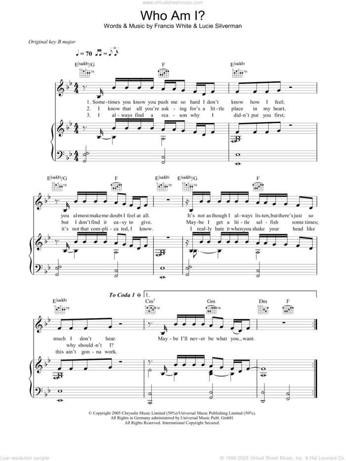 This new feature (still experimental) allows you to ask questions related to this music title to our AI music assistant (powered by OpenAI ChatGPT), trained to answer as an expert on this music title.You may ask questions like "When was this song written?" or "How would you suggest approaching this song?" You can also ask questions about the author or anything else you may think of. Just enter your queries inside the field on the top of the displayed music and click the "Ask" button on the left to start chatting. Remember that the assistant cannot perform catalog searches. It is focused only on this music title. It could also give you wrong or imperfect answers. In that case, click the "regenerate" button on the side of the answer to replace it with a new one. And, of course, you can provide feedback for each answer so we can improve the system. ![]() Will Young: Who Am I for voice, piano or guitar, intermediate sheet music. Includes an High-Quality PDF file to download instantly. Licensed to Virtual Sheet Music® by Hal Leonard® publishing company. NOTE: The image above is just a preview of the first page of this item. Buy this item to display, print, and enjoy the complete music. Basic Score Info