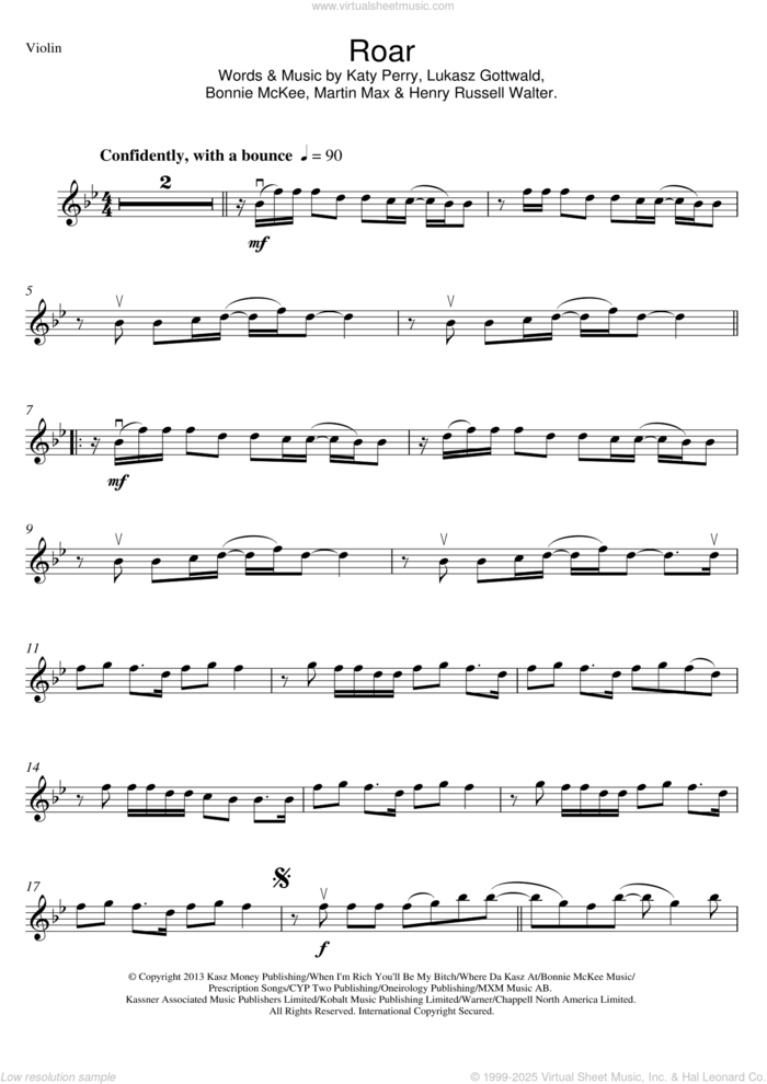 This new feature (still experimental) allows you to ask questions related to this music title to our AI music assistant (powered by OpenAI ChatGPT), trained to answer as an expert on this music title.You may ask questions like "When was this song written?" or "How would you suggest approaching this song?" You can also ask questions about the author or anything else you may think of. Just enter your queries inside the field on the top of the displayed music and click the "Ask" button on the left to start chatting. Remember that the assistant cannot perform catalog searches. It is focused only on this music title. It could also give you wrong or imperfect answers. In that case, click the "regenerate" button on the side of the answer to replace it with a new one. And, of course, you can provide feedback for each answer so we can improve the system. ![]() Katy Perry: Roar for violin solo, intermediate violin sheet music. High-Quality and Interactive, transposable in any key, play along. Includes an High-Quality PDF file to download instantly. Licensed to Virtual Sheet Music® by Hal Leonard® publishing company. NOTE: The sample above is just the first page preview of this item. Buy this item to display, print, and play the complete music. Basic Score Info