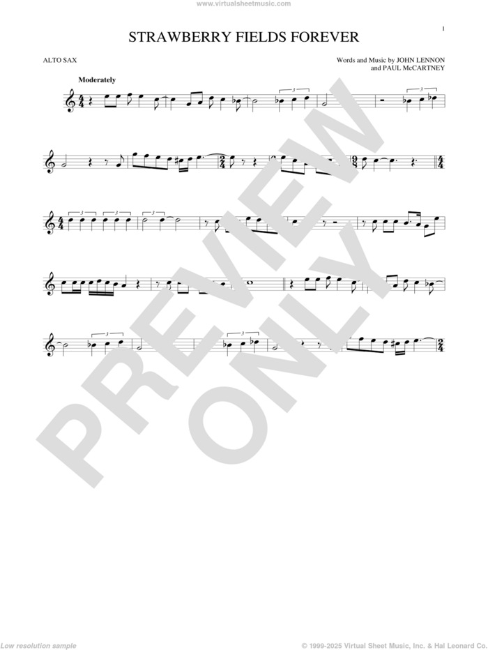 This new feature (still experimental) allows you to ask questions related to this music title to our AI music assistant (powered by OpenAI ChatGPT), trained to answer as an expert on this music title.You may ask questions like "When was this song written?" or "How would you suggest approaching this song?" You can also ask questions about the author or anything else you may think of. Just enter your queries inside the field on the top of the displayed music and click the "Ask" button on the left to start chatting. Remember that the assistant cannot perform catalog searches. It is focused only on this music title. It could also give you wrong or imperfect answers. In that case, click the "regenerate" button on the side of the answer to replace it with a new one. And, of course, you can provide feedback for each answer so we can improve the system. ![]() The Beatles: Strawberry Fields Forever for alto saxophone solo, intermediate alto sax sheet music. High-Quality and Interactive, transposable in any key, play along. Includes an High-Quality PDF file to download instantly. Licensed to Virtual Sheet Music® by Hal Leonard® publishing company. NOTE: The sample above is just the first page preview of this item. Buy this item to display, print, and play the complete music. Basic Score Info