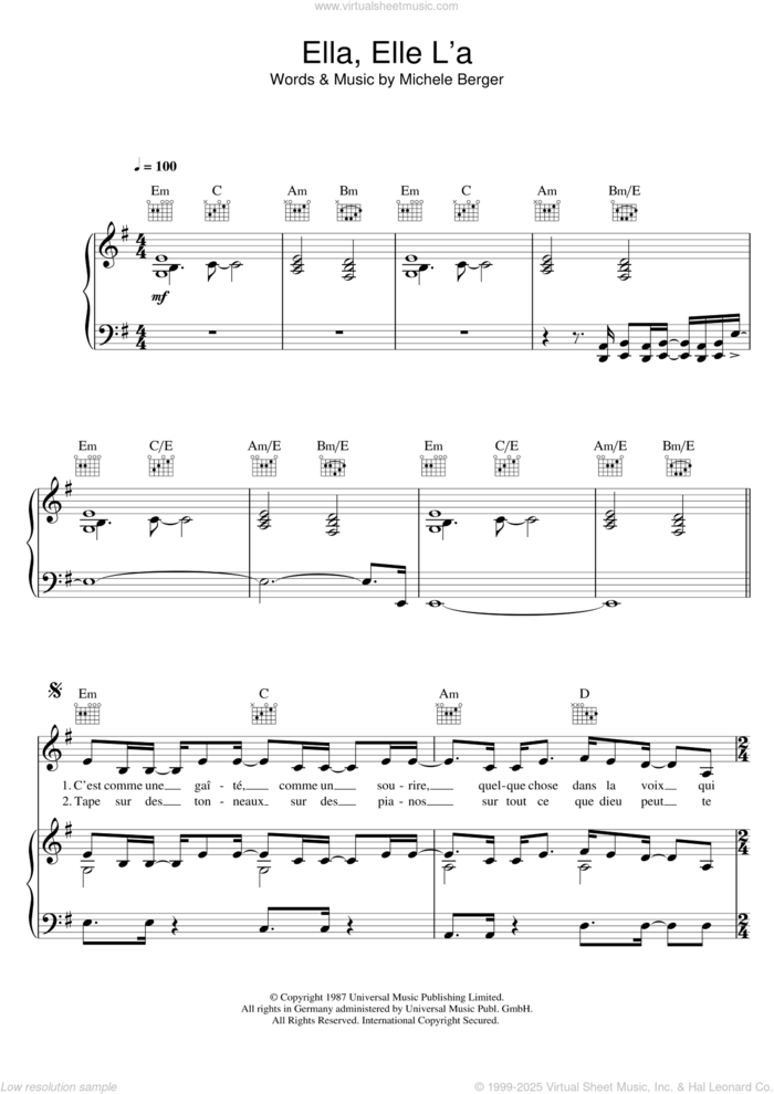Ella, Elle L'a sheet music for voice, piano or guitar