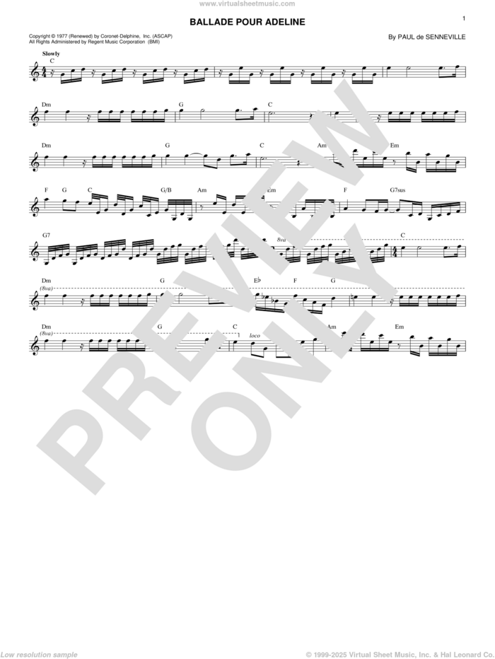 This new feature (still experimental) allows you to ask questions related to this music title to our AI music assistant (powered by OpenAI ChatGPT), trained to answer as an expert on this music title.You may ask questions like "When was this song written?" or "How would you suggest approaching this song?" You can also ask questions about the author or anything else you may think of. Just enter your queries inside the field on the top of the displayed music and click the "Ask" button on the left to start chatting. Remember that the assistant cannot perform catalog searches. It is focused only on this music title. It could also give you wrong or imperfect answers. In that case, click the "regenerate" button on the side of the answer to replace it with a new one. And, of course, you can provide feedback for each answer so we can improve the system. ![]() Paul de Senneville: Ballade Pour Adeline for voice and other instruments (fake book), intermediate voice sheet music. High-Quality and Interactive, transposable in any key, play along. Includes an High-Quality PDF file to download instantly. Licensed to Virtual Sheet Music® by Hal Leonard® publishing company. NOTE: The sample above is just the first page preview of this item. Buy this item to display, print, and play the complete music. Basic Score Info