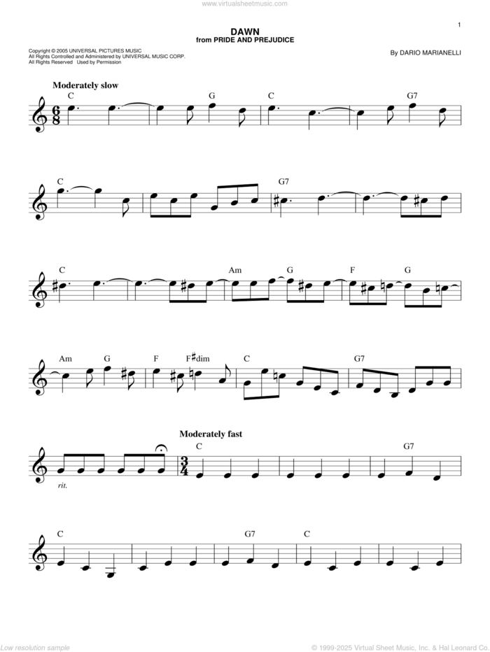 This new feature (still experimental) allows you to ask questions related to this music title to our AI music assistant (powered by OpenAI ChatGPT), trained to answer as an expert on this music title.You may ask questions like "When was this song written?" or "How would you suggest approaching this song?" You can also ask questions about the author or anything else you may think of. Just enter your queries inside the field on the top of the displayed music and click the "Ask" button on the left to start chatting. Remember that the assistant cannot perform catalog searches. It is focused only on this music title. It could also give you wrong or imperfect answers. In that case, click the "regenerate" button on the side of the answer to replace it with a new one. And, of course, you can provide feedback for each answer so we can improve the system. ![]() Dario Marianelli: Dawn (from Pride And Prejudice) for voice and other instruments (fake book), easy voice sheet music. Includes an High-Quality PDF file to download instantly. Licensed to Virtual Sheet Music® by Hal Leonard® publishing company. NOTE: The image above is just a preview of the first page of this item. Buy this item to display, print, and enjoy the complete music. Basic Score Info
