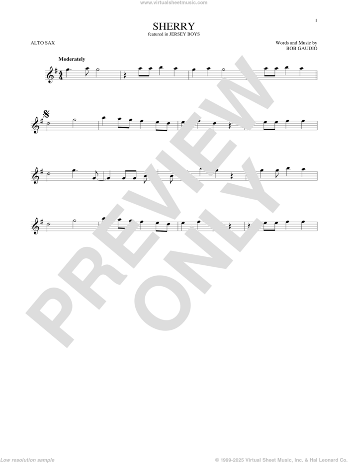 This new feature (still experimental) allows you to ask questions related to this music title to our AI music assistant (powered by OpenAI ChatGPT), trained to answer as an expert on this music title.You may ask questions like "When was this song written?" or "How would you suggest approaching this song?" You can also ask questions about the author or anything else you may think of. Just enter your queries inside the field on the top of the displayed music and click the "Ask" button on the left to start chatting. Remember that the assistant cannot perform catalog searches. It is focused only on this music title. It could also give you wrong or imperfect answers. In that case, click the "regenerate" button on the side of the answer to replace it with a new one. And, of course, you can provide feedback for each answer so we can improve the system. ![]() The Four Seasons: Sherry for alto saxophone solo, intermediate alto sax sheet music. High-Quality and Interactive, transposable in any key, play along. Includes an High-Quality PDF file to download instantly. Licensed to Virtual Sheet Music® by Hal Leonard® publishing company. NOTE: The sample above is just the first page preview of this item. Buy this item to display, print, and play the complete music. Basic Score Info