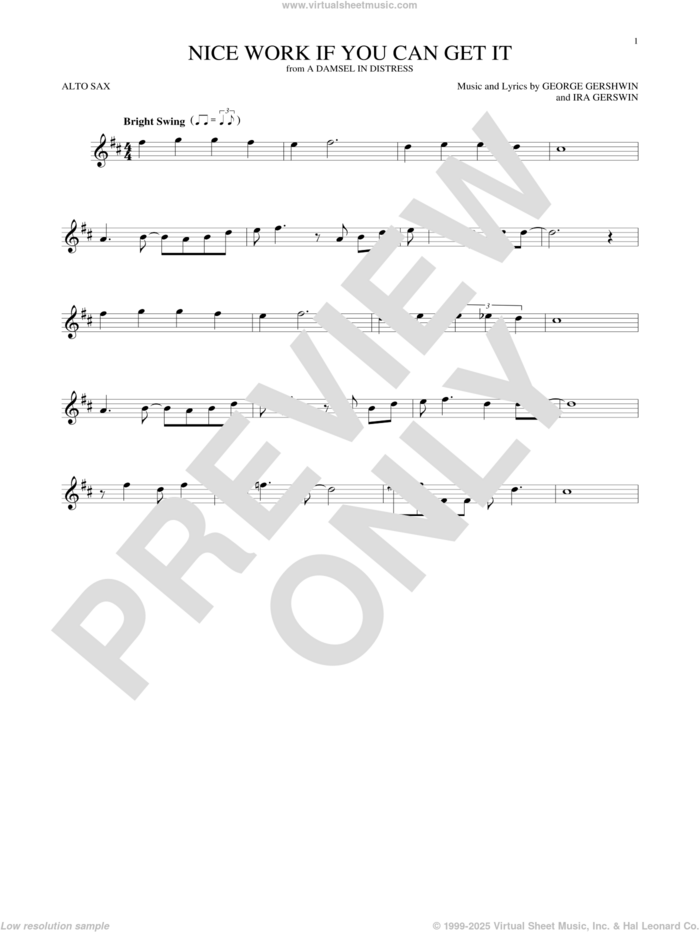 This new feature (still experimental) allows you to ask questions related to this music title to our AI music assistant (powered by OpenAI ChatGPT), trained to answer as an expert on this music title.You may ask questions like "When was this song written?" or "How would you suggest approaching this song?" You can also ask questions about the author or anything else you may think of. Just enter your queries inside the field on the top of the displayed music and click the "Ask" button on the left to start chatting. Remember that the assistant cannot perform catalog searches. It is focused only on this music title. It could also give you wrong or imperfect answers. In that case, click the "regenerate" button on the side of the answer to replace it with a new one. And, of course, you can provide feedback for each answer so we can improve the system. ![]() Frank Sinatra: Nice Work If You Can Get It for alto saxophone solo, intermediate alto sax sheet music. High-Quality and Interactive, transposable in any key, play along. Includes an High-Quality PDF file to download instantly. Licensed to Virtual Sheet Music® by Hal Leonard® publishing company. NOTE: The sample above is just the first page preview of this item. Buy this item to display, print, and play the complete music. Basic Score Info
