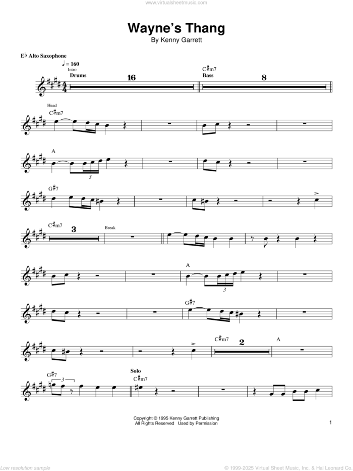 This new feature (still experimental) allows you to ask questions related to this music title to our AI music assistant (powered by OpenAI ChatGPT), trained to answer as an expert on this music title.You may ask questions like "When was this song written?" or "How would you suggest approaching this song?" You can also ask questions about the author or anything else you may think of. Just enter your queries inside the field on the top of the displayed music and click the "Ask" button on the left to start chatting. Remember that the assistant cannot perform catalog searches. It is focused only on this music title. It could also give you wrong or imperfect answers. In that case, click the "regenerate" button on the side of the answer to replace it with a new one. And, of course, you can provide feedback for each answer so we can improve the system. ![]() Kenny Garrett: Wayne's Thang for alto saxophone (transcription), intermediate alto sax (transcription) sheet music. Includes an High-Quality PDF file to download instantly. Licensed to Virtual Sheet Music® by Hal Leonard® publishing company. NOTE: The image above is just a preview of the first page of this item. Buy this item to display, print, and enjoy the complete music. Basic Score Info