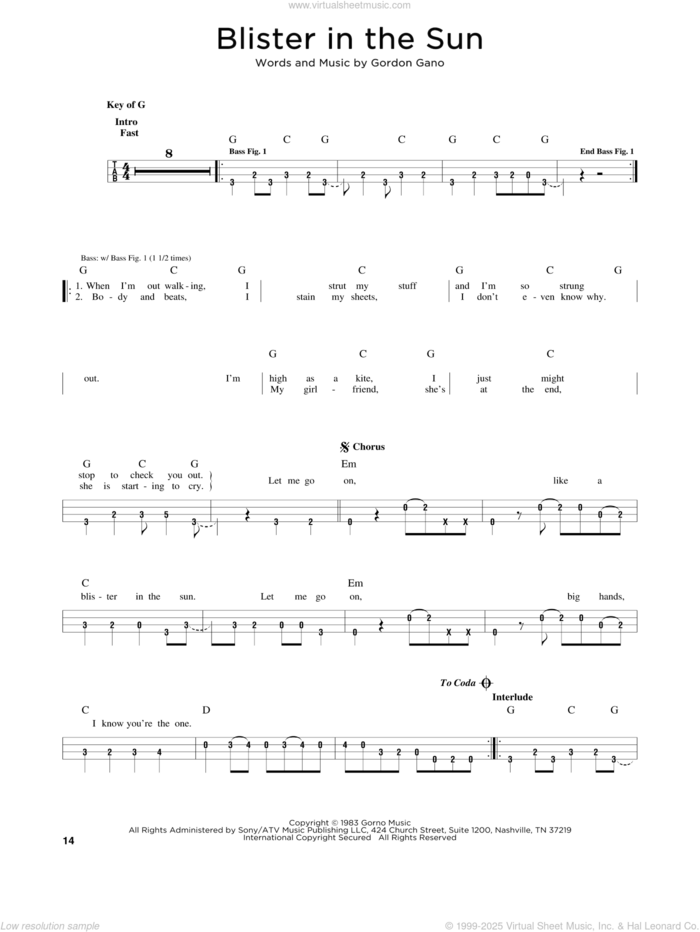 This new feature (still experimental) allows you to ask questions related to this music title to our AI music assistant (powered by OpenAI ChatGPT), trained to answer as an expert on this music title.You may ask questions like "When was this song written?" or "How would you suggest approaching this song?" You can also ask questions about the author or anything else you may think of. Just enter your queries inside the field on the top of the displayed music and click the "Ask" button on the left to start chatting. Remember that the assistant cannot perform catalog searches. It is focused only on this music title. It could also give you wrong or imperfect answers. In that case, click the "regenerate" button on the side of the answer to replace it with a new one. And, of course, you can provide feedback for each answer so we can improve the system. ![]() Violent Femmes: Blister In The Sun for bass solo, intermediate bass sheet music. Includes an High-Quality PDF file to download instantly. Licensed to Virtual Sheet Music® by Hal Leonard® publishing company. NOTE: The image above is just a preview of the first page of this item. Buy this item to display, print, and enjoy the complete music. Basic Score Info