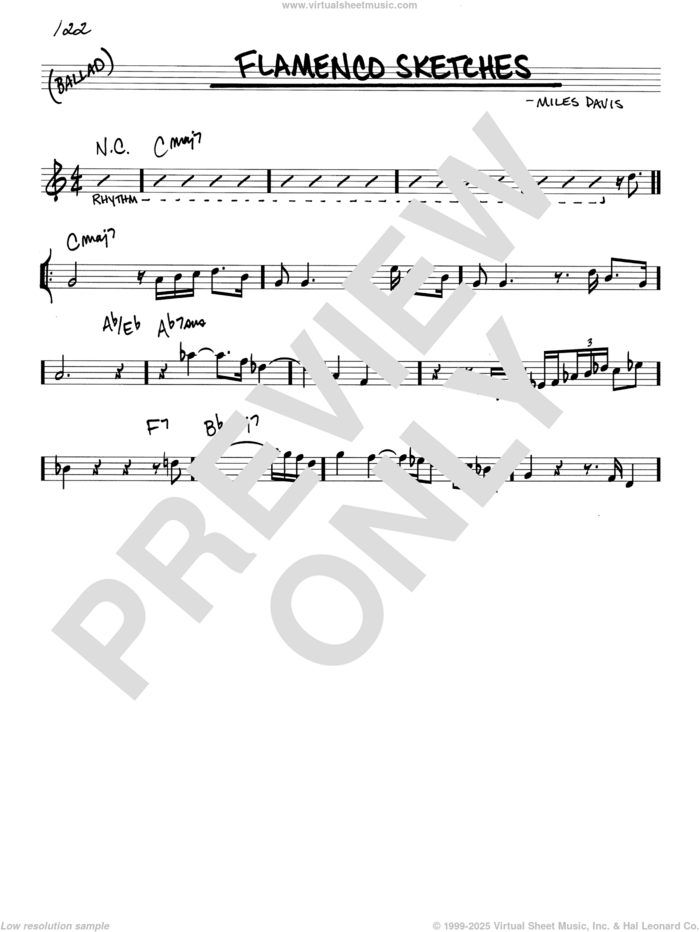 This new feature (still experimental) allows you to ask questions related to this music title to our AI music assistant (powered by OpenAI ChatGPT), trained to answer as an expert on this music title.You may ask questions like "When was this song written?" or "How would you suggest approaching this song?" You can also ask questions about the author or anything else you may think of. Just enter your queries inside the field on the top of the displayed music and click the "Ask" button on the left to start chatting. Remember that the assistant cannot perform catalog searches. It is focused only on this music title. It could also give you wrong or imperfect answers. In that case, click the "regenerate" button on the side of the answer to replace it with a new one. And, of course, you can provide feedback for each answer so we can improve the system. ![]() Miles Davis: Flamenco Sketches for voice and other instruments (real book), intermediate voice sheet music. Includes an High-Quality PDF file to download instantly. Licensed to Virtual Sheet Music® by Hal Leonard® publishing company. NOTE: The image above is just a preview of the first page of this item. Buy this item to display, print, and enjoy the complete music. Basic Score Info