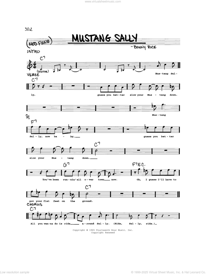 This new feature (still experimental) allows you to ask questions related to this music title to our AI music assistant (powered by OpenAI ChatGPT), trained to answer as an expert on this music title.You may ask questions like "When was this song written?" or "How would you suggest approaching this song?" You can also ask questions about the author or anything else you may think of. Just enter your queries inside the field on the top of the displayed music and click the "Ask" button on the left to start chatting. Remember that the assistant cannot perform catalog searches. It is focused only on this music title. It could also give you wrong or imperfect answers. In that case, click the "regenerate" button on the side of the answer to replace it with a new one. And, of course, you can provide feedback for each answer so we can improve the system. ![]() Wilson Pickett: Mustang Sally for voice and other instruments (real book), intermediate voice sheet music. Includes an High-Quality PDF file to download instantly. Licensed to Virtual Sheet Music® by Hal Leonard® publishing company. NOTE: The image above is just a preview of the first page of this item. Buy this item to display, print, and enjoy the complete music. Basic Score Info