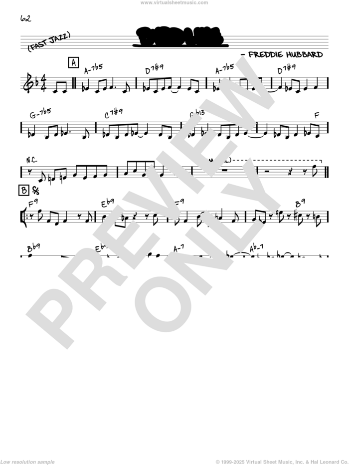 This new feature (still experimental) allows you to ask questions related to this music title to our AI music assistant (powered by OpenAI ChatGPT), trained to answer as an expert on this music title.You may ask questions like "When was this song written?" or "How would you suggest approaching this song?" You can also ask questions about the author or anything else you may think of. Just enter your queries inside the field on the top of the displayed music and click the "Ask" button on the left to start chatting. Remember that the assistant cannot perform catalog searches. It is focused only on this music title. It could also give you wrong or imperfect answers. In that case, click the "regenerate" button on the side of the answer to replace it with a new one. And, of course, you can provide feedback for each answer so we can improve the system. ![]() Freddie Hubbard: Byrd Like [Reharmonized version] (arr. Jack Grassel) for voice and other instruments (real book), intermediate voice sheet music. Includes an High-Quality PDF file to download instantly. Licensed to Virtual Sheet Music® by Hal Leonard® publishing company. NOTE: The image above is just a preview of the first page of this item. Buy this item to display, print, and enjoy the complete music. Basic Score Info