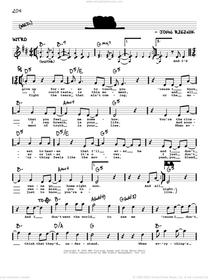 Goo Goo Dolls: Iris for voice and other instruments (real book with lyrics), intermediate voice sheet music. Includes an High-Quality PDF file to download instantly. Licensed to Virtual Sheet Music® by Hal Leonard® publishing company.