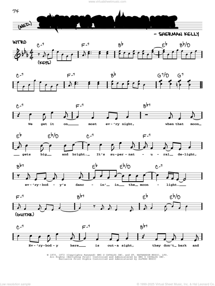 This new feature (still experimental) allows you to ask questions related to this music title to our AI music assistant (powered by OpenAI ChatGPT), trained to answer as an expert on this music title.You may ask questions like "When was this song written?" or "How would you suggest approaching this song?" You can also ask questions about the author or anything else you may think of. Just enter your queries inside the field on the top of the displayed music and click the "Ask" button on the left to start chatting. Remember that the assistant cannot perform catalog searches. It is focused only on this music title. It could also give you wrong or imperfect answers. In that case, click the "regenerate" button on the side of the answer to replace it with a new one. And, of course, you can provide feedback for each answer so we can improve the system. ![]() King Harvest: Dancin' In The Moonlight for voice and other instruments (real book with lyrics), intermediate voice sheet music. Includes an High-Quality PDF file to download instantly. Licensed to Virtual Sheet Music® by Hal Leonard® publishing company. NOTE: The image above is just a preview of the first page of this item. Buy this item to display, print, and enjoy the complete music. Basic Score Info
