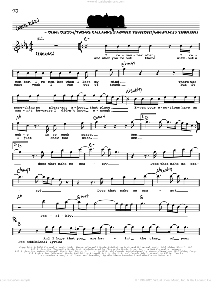 This new feature (still experimental) allows you to ask questions related to this music title to our AI music assistant (powered by OpenAI ChatGPT), trained to answer as an expert on this music title.You may ask questions like "When was this song written?" or "How would you suggest approaching this song?" You can also ask questions about the author or anything else you may think of. Just enter your queries inside the field on the top of the displayed music and click the "Ask" button on the left to start chatting. Remember that the assistant cannot perform catalog searches. It is focused only on this music title. It could also give you wrong or imperfect answers. In that case, click the "regenerate" button on the side of the answer to replace it with a new one. And, of course, you can provide feedback for each answer so we can improve the system. ![]() Gnarls Barkley: Crazy for voice and other instruments (real book with lyrics), intermediate voice sheet music. Includes an High-Quality PDF file to download instantly. Licensed to Virtual Sheet Music® by Hal Leonard® publishing company. NOTE: The image above is just a preview of the first page of this item. Buy this item to display, print, and enjoy the complete music. Basic Score Info