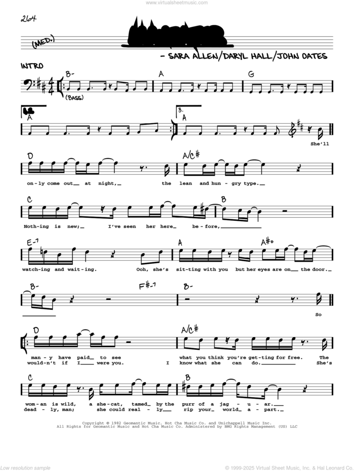 Maneater sheet music for voice and other instruments (real book with lyrics) by Hall and Oates, Daryl Hall, John Oates and Sara Allen, intermediate skill level