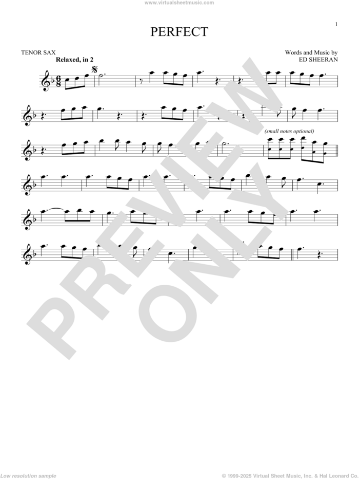 This new feature (still experimental) allows you to ask questions related to this music title to our AI music assistant (powered by OpenAI ChatGPT), trained to answer as an expert on this music title.You may ask questions like "When was this song written?" or "How would you suggest approaching this song?" You can also ask questions about the author or anything else you may think of. Just enter your queries inside the field on the top of the displayed music and click the "Ask" button on the left to start chatting. Remember that the assistant cannot perform catalog searches. It is focused only on this music title. It could also give you wrong or imperfect answers. In that case, click the "regenerate" button on the side of the answer to replace it with a new one. And, of course, you can provide feedback for each answer so we can improve the system. ![]() Ed Sheeran: Perfect for tenor saxophone solo, intermediate tenor sax sheet music. High-Quality and Interactive, transposable in any key, play along. Includes an High-Quality PDF file to download instantly. Licensed to Virtual Sheet Music® by Hal Leonard® publishing company. NOTE: The sample above is just the first page preview of this item. Buy this item to display, print, and play the complete music. Basic Score Info