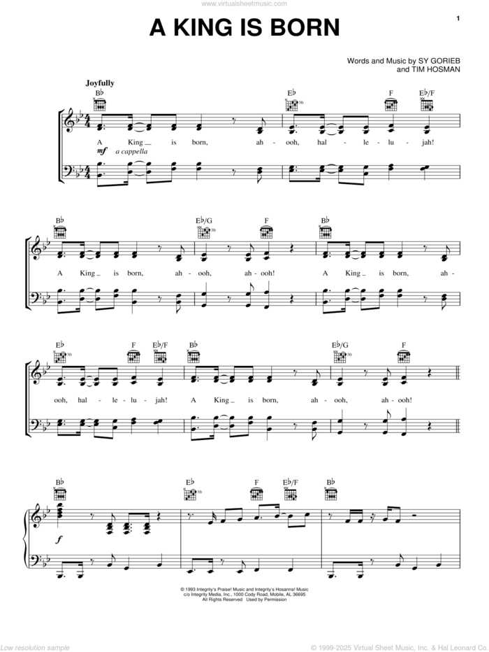 A King Is Born sheet music for voice, piano or guitar by Ron Kenoly, Sy Goraieb and Tim Hosman, intermediate skill level