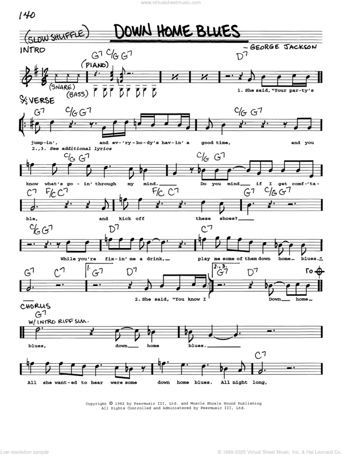 This new feature (still experimental) allows you to ask questions related to this music title to our AI music assistant (powered by OpenAI ChatGPT), trained to answer as an expert on this music title.You may ask questions like "When was this song written?" or "How would you suggest approaching this song?" You can also ask questions about the author or anything else you may think of. Just enter your queries inside the field on the top of the displayed music and click the "Ask" button on the left to start chatting. Remember that the assistant cannot perform catalog searches. It is focused only on this music title. It could also give you wrong or imperfect answers. In that case, click the "regenerate" button on the side of the answer to replace it with a new one. And, of course, you can provide feedback for each answer so we can improve the system. ![]() George Jackson: Down Home Blues for voice and other instruments (real book with lyrics), intermediate voice sheet music. Includes an High-Quality PDF file to download instantly. Licensed to Virtual Sheet Music® by Hal Leonard® publishing company. NOTE: The image above is just a preview of the first page of this item. Buy this item to display, print, and enjoy the complete music. Basic Score Info