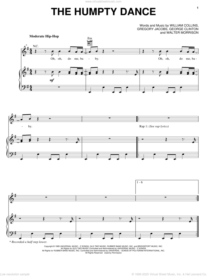 This new feature (still experimental) allows you to ask questions related to this music title to our AI music assistant (powered by OpenAI ChatGPT), trained to answer as an expert on this music title.You may ask questions like "When was this song written?" or "How would you suggest approaching this song?" You can also ask questions about the author or anything else you may think of. Just enter your queries inside the field on the top of the displayed music and click the "Ask" button on the left to start chatting. Remember that the assistant cannot perform catalog searches. It is focused only on this music title. It could also give you wrong or imperfect answers. In that case, click the "regenerate" button on the side of the answer to replace it with a new one. And, of course, you can provide feedback for each answer so we can improve the system. ![]() Digital Underground: The Humpty Dance for voice, piano or guitar, intermediate sheet music. High-Quality and Interactive, transposable in any key, play along. Includes an High-Quality PDF file to download instantly. Licensed to Virtual Sheet Music® by Hal Leonard® publishing company. NOTE: The sample above is just the first page preview of this item. Buy this item to display, print, and play the complete music. Basic Score Info